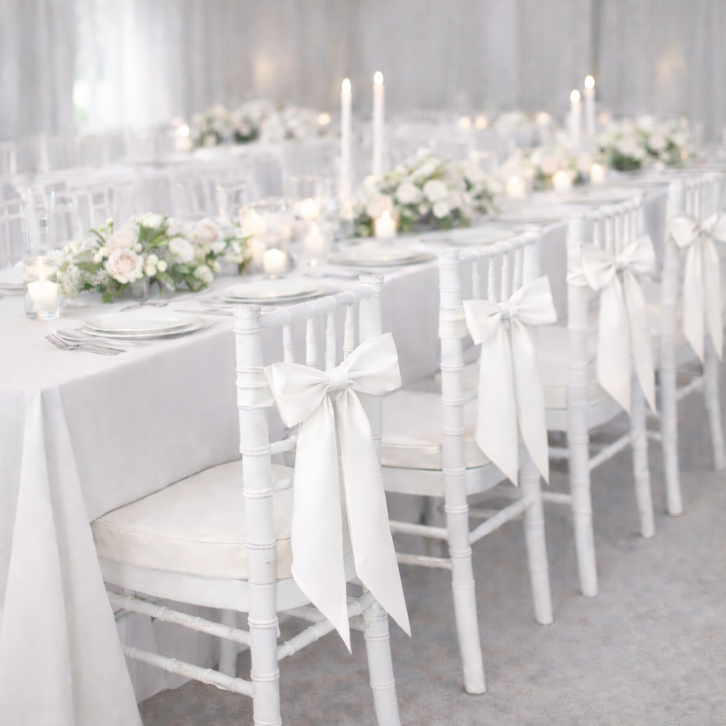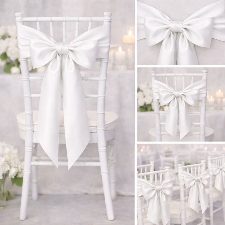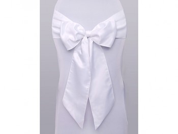 Saténová mašle na židli BÍLÁ-zapůjčeníSaténové mašle jsou elegantním doplňkem, který dodá slavnostní vzhled svatebním hostinám, plesům, oslavám i firemním akcím. Lze je použít samostatně nebo v kombinaci s potahy na židle.