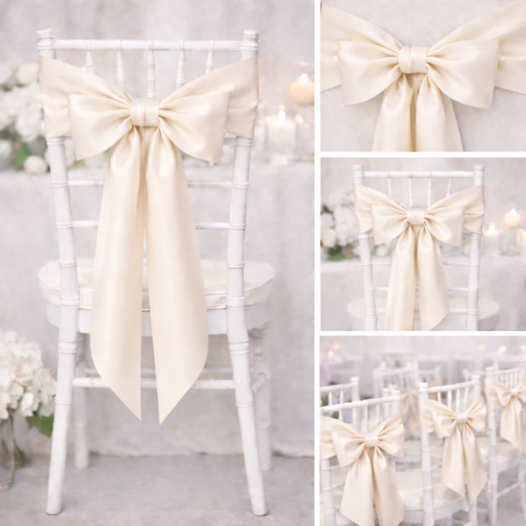 Saténová mašle na židli smetanová-zapůjčeníSaténové mašle jsou elegantním doplňkem, který dodá slavnostní vzhled svatebním hostinám, plesům, oslavám i firemním akcím. Lze je použít samostatně nebo v kombinaci s potahy na židle.