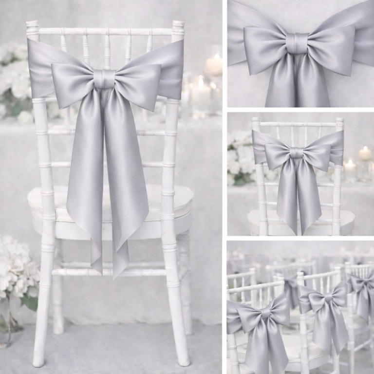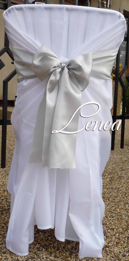 Saténová mašle na židli stříbrná-zapůjčeníSaténové mašle jsou elegantním doplňkem, který dodá slavnostní vzhled svatebním hostinám, plesům, oslavám i firemním akcím. Lze je použít samostatně nebo v kombinaci s potahy na židle.